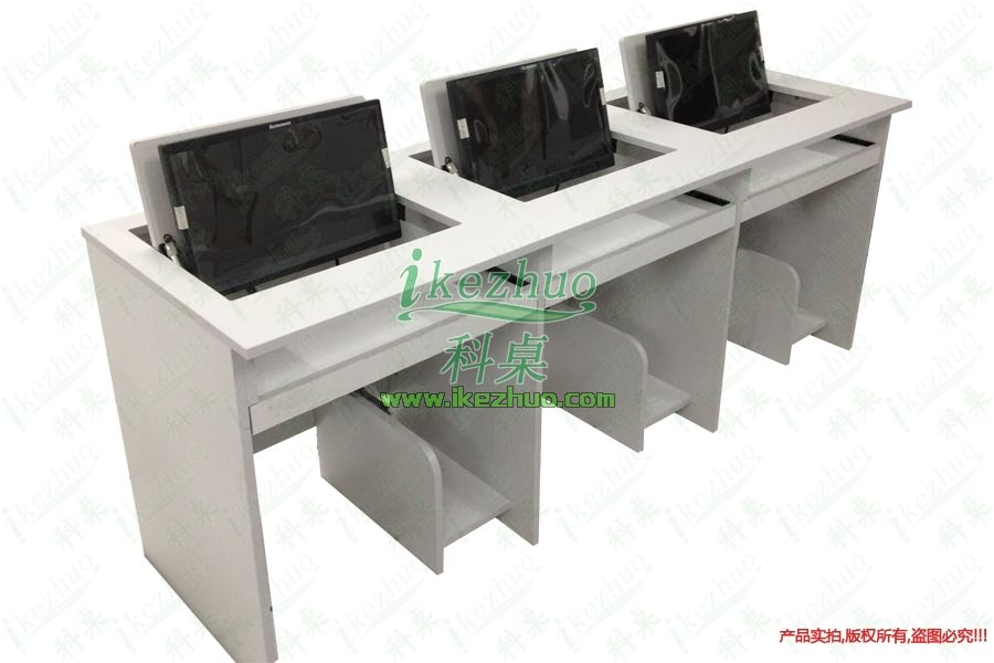 科桌翻轉電腦桌主要應用于各種大型會議室,學術報告廳,計算機教室,多媒體教室、多媒體會議室、多媒體電子教室、多媒體電教室、機房、培訓中心,展廳內及多功能會議廳等。普通教室與計算機教室模式相互切換快速,不阻礙老師與學生之間目光交流。