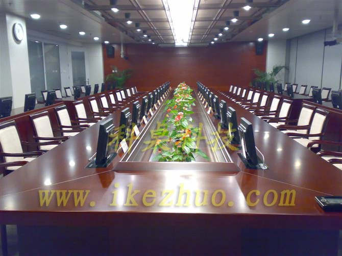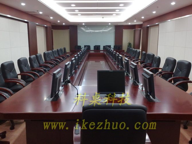 從會議桌下面升到桌面、◆當(dāng)不使用顯示器時,◆升降機自動下降,◆顯示器隱藏在會議桌內(nèi),◆起到防塵,◆防盜,◆保持桌面平整美觀。